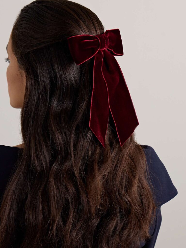Jennifer Behr's hair clip has been handmade in Brooklyn from thick velvet knotted into a wide bow. The steel French barrette closure ensures it will stay in place all day or night.