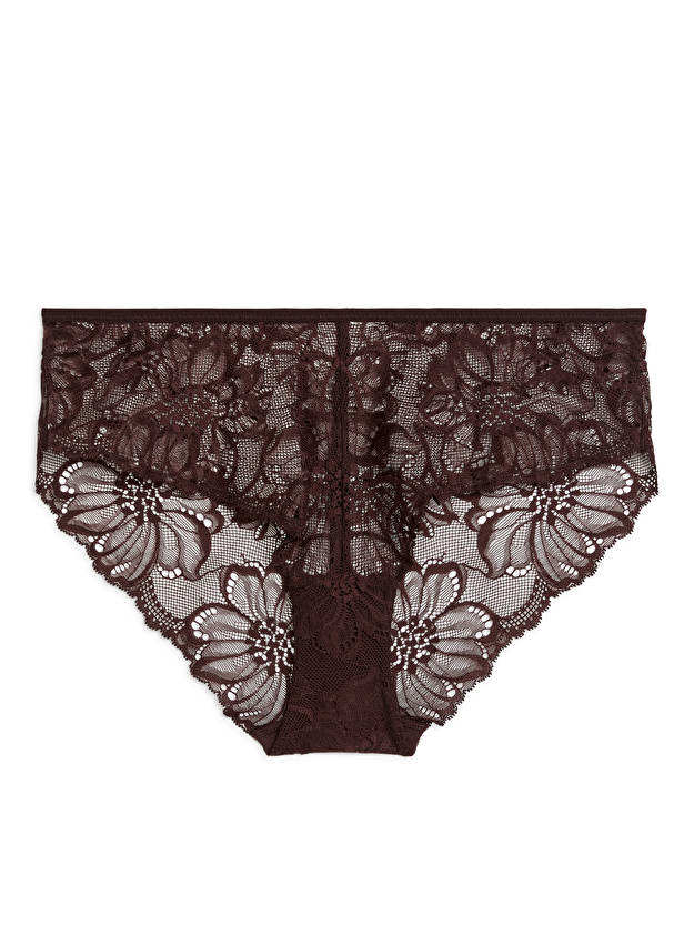 Crafted from an intricate floral lace, these regular waist hipsters offer a semi sheer coverage.