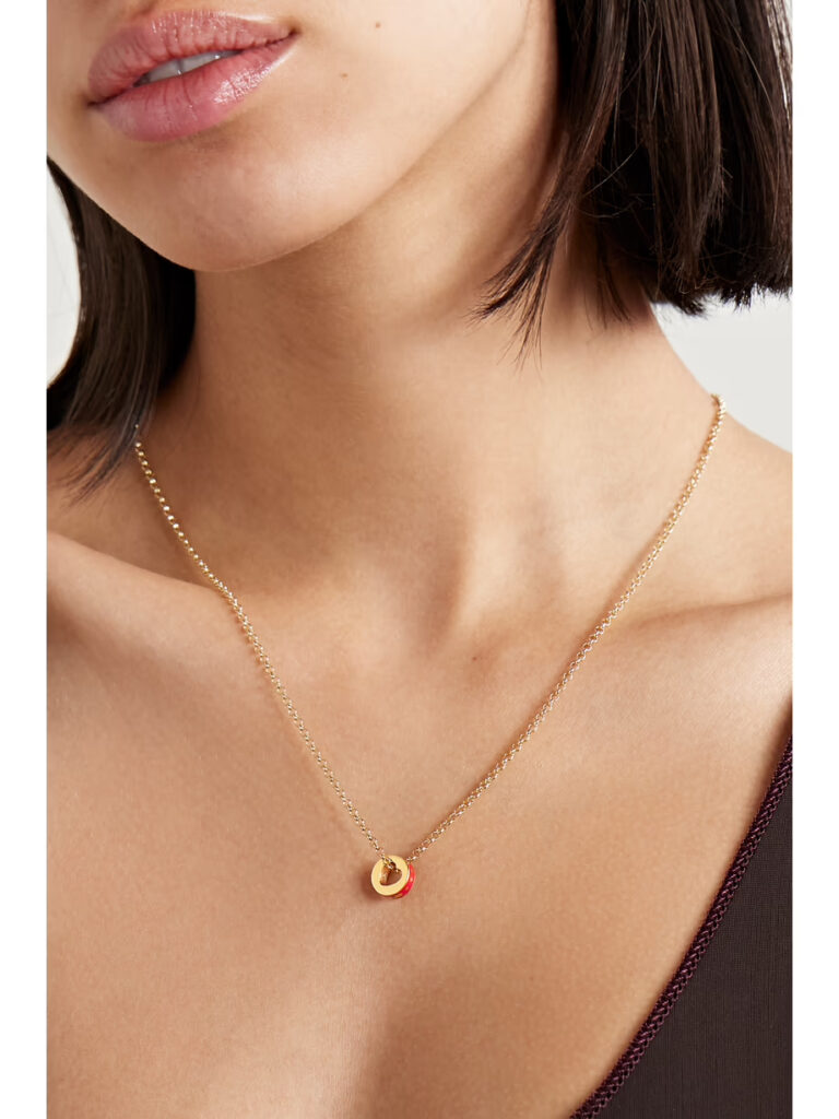Foundrae's 18'' necklace is strung with an enamelled bead that spells out 'Fuerza' - which translates to 'Strength' - and has a carefully carved heart at its center. It's handmade from 18-karat gold and can be stacked with more of the sentimental charms, depending on what you want to hold close to you that day. The 18-inch chain can be adjusted between a variety of lengths.